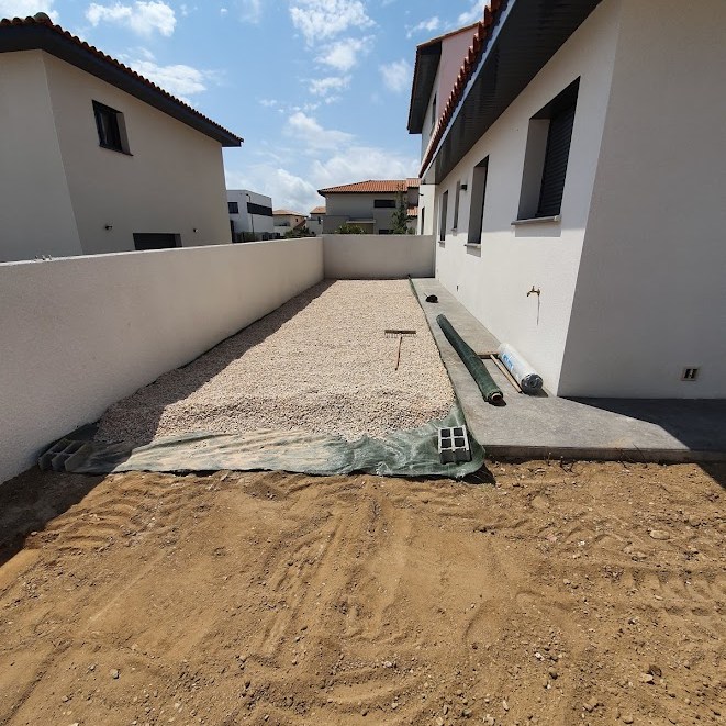 Sur ce projet d’une villa en location, le client nous a demandé un aménagement du contour de la villa en gravier de couleur claire. Une préparation sous le béton marqué avait été faite par notre entreprise.