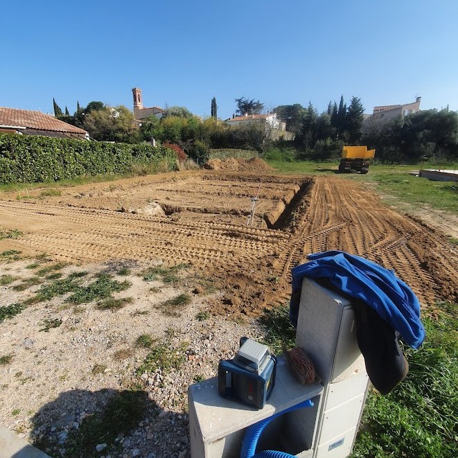 Sur ce projet, nous avons tout d’abord fait un petit décaissement sur la surface de la construction, puis enfin les fouilles en rigoles suivant l’étude de sol apportée par notre client. Par la suite le lot gros œuvre est venu couler les fondations, ce qui marque le point de départ de toute construction pour la partie maçonnerie.