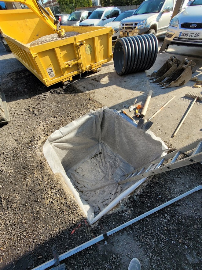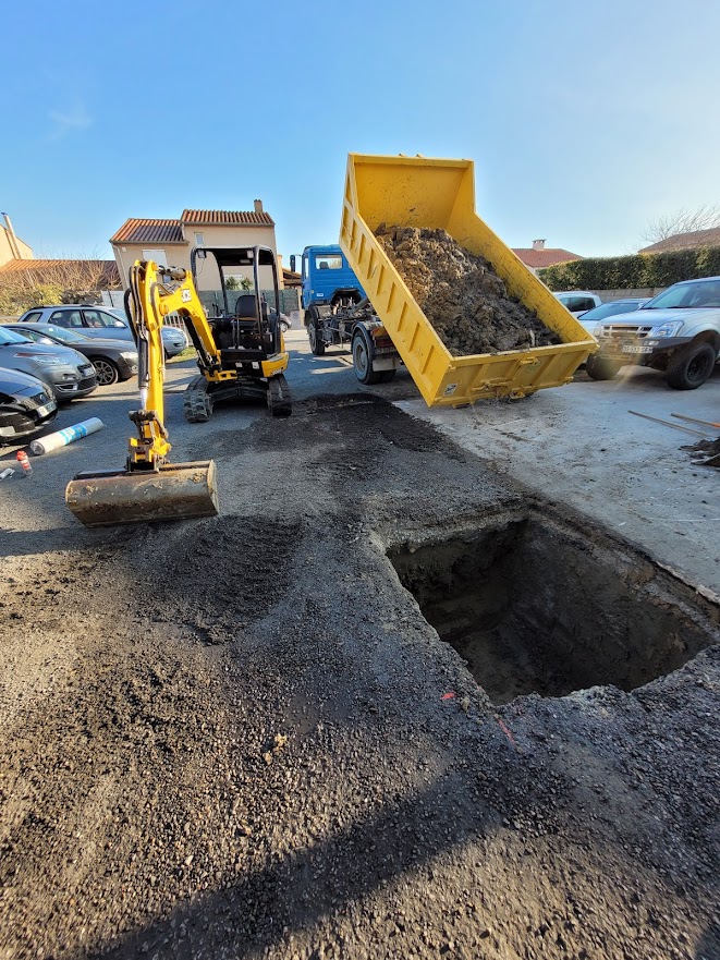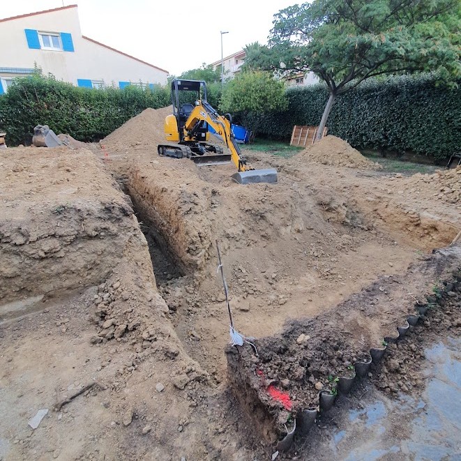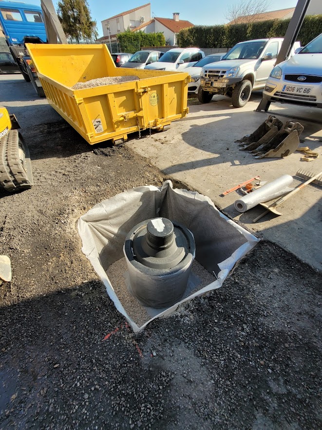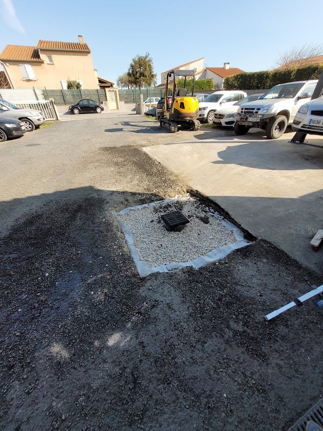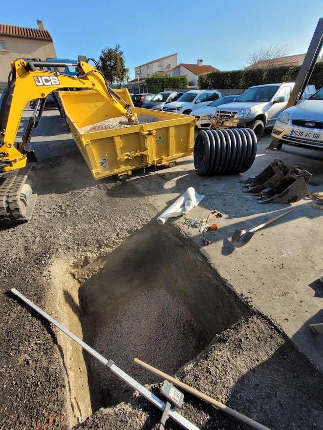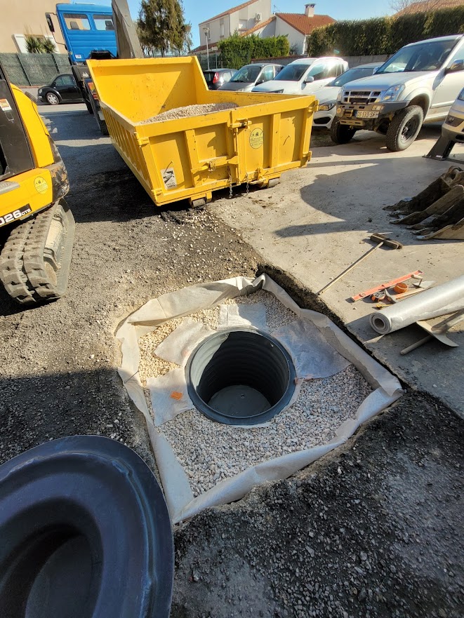 Sur ce projet nous avons du répondre à une demande particulière. En effet cela faisait plusieurs années que notre client avait des problèmes avec les eaux de pluie lors de gros orages, son terrain étant plus bas que la voie publique. Nous lui avons donc proposé de créer un puit sec pour emmagasiner le trop plein d’eau. Un plombier interviendra ensuite pour la pose d’une pompe de relevage pour évacuation des E.P dans le réseau public.